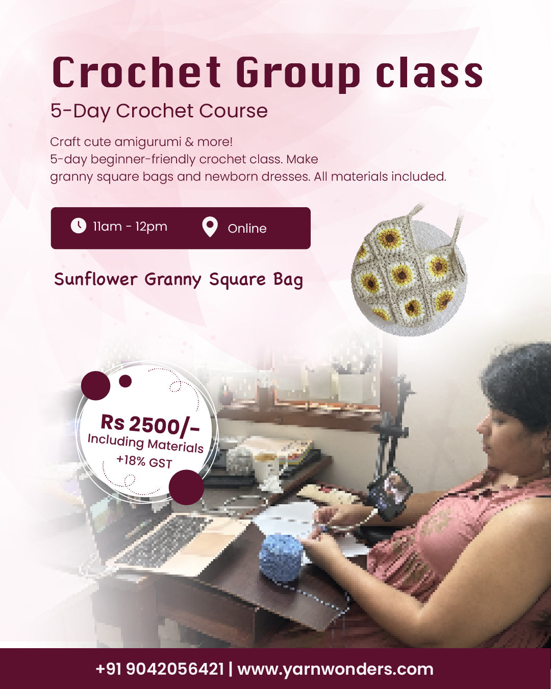 Join our 5-day online class, 1 hour a day, and create your very own adorable Granny square Bag! Perfect for beginners.